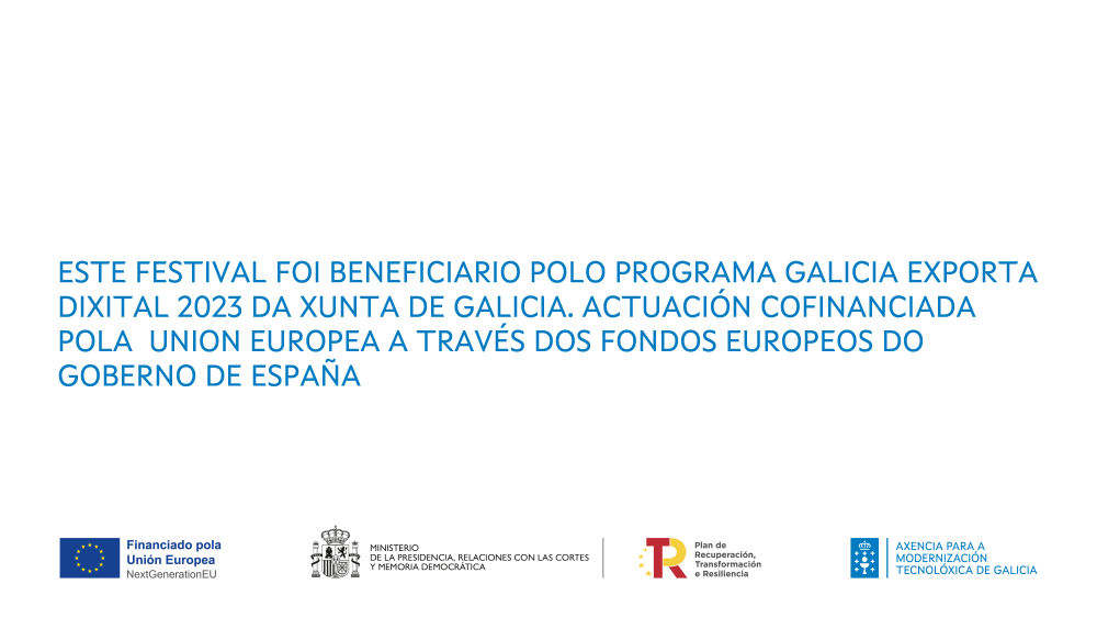 Os beneficiarios dos fondos europeos e que desenvolvan obras audiovisuais, debido á súa condición de beneficiarios, deben indicar nun lugar visible o seguinte texto:
